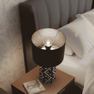 This Black & White Plus Pattern Resin Table Lamp is a handcrafted lighting piece featuring a striking geometric plus design. Made from premium resin and finished with a fabric lampshade, this lamp adds elegance and warmth to bedrooms, living rooms, hotels, and luxury interiors.
