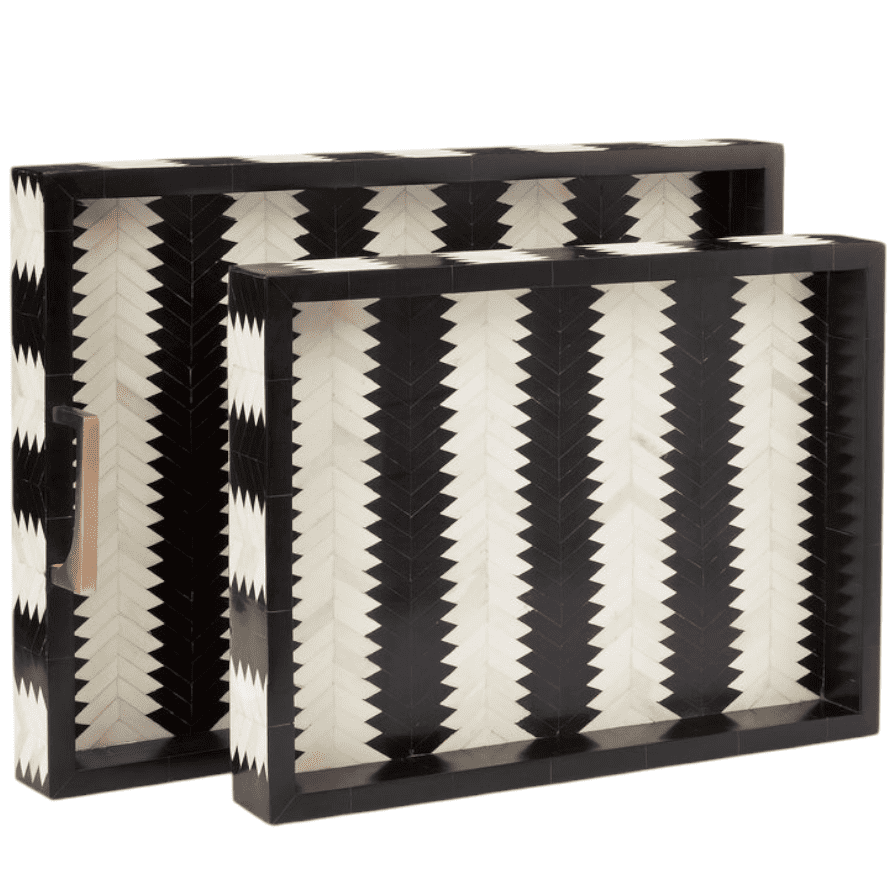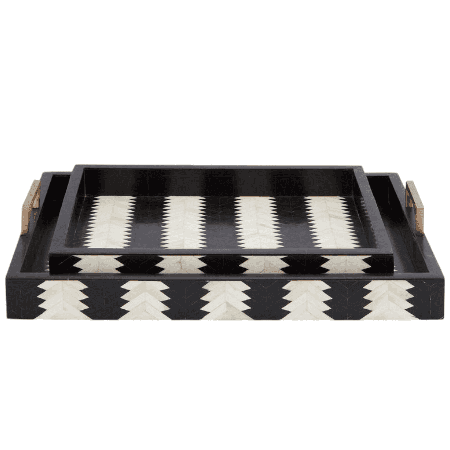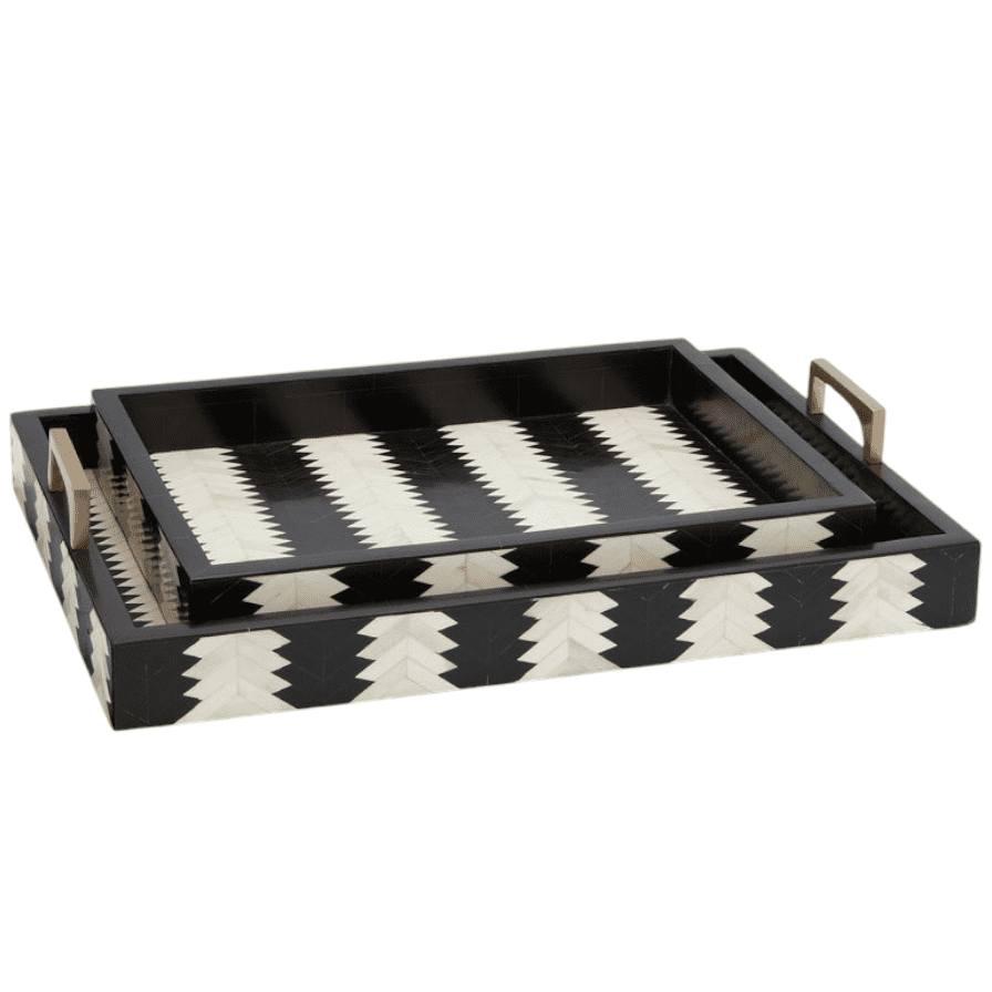 Elevate your serving experience with this stunning black and white tray featuring a clean geometric pattern. Crafted from high-quality resin, it combines style and durability — perfect for modern and minimalistic interiors.