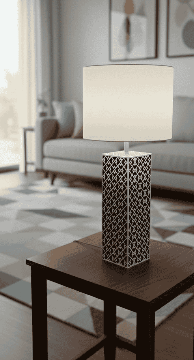 This Black & White Resin Table Lamp is handcrafted by skilled artisans using high-quality resin and traditional techniques. The bold geometric pattern creates a modern visual appeal while the fabric shade provides soft, ambient lighting. Each lamp is unique in character, making it a perfect choice for luxury interiors, boutique hotels, and export markets.