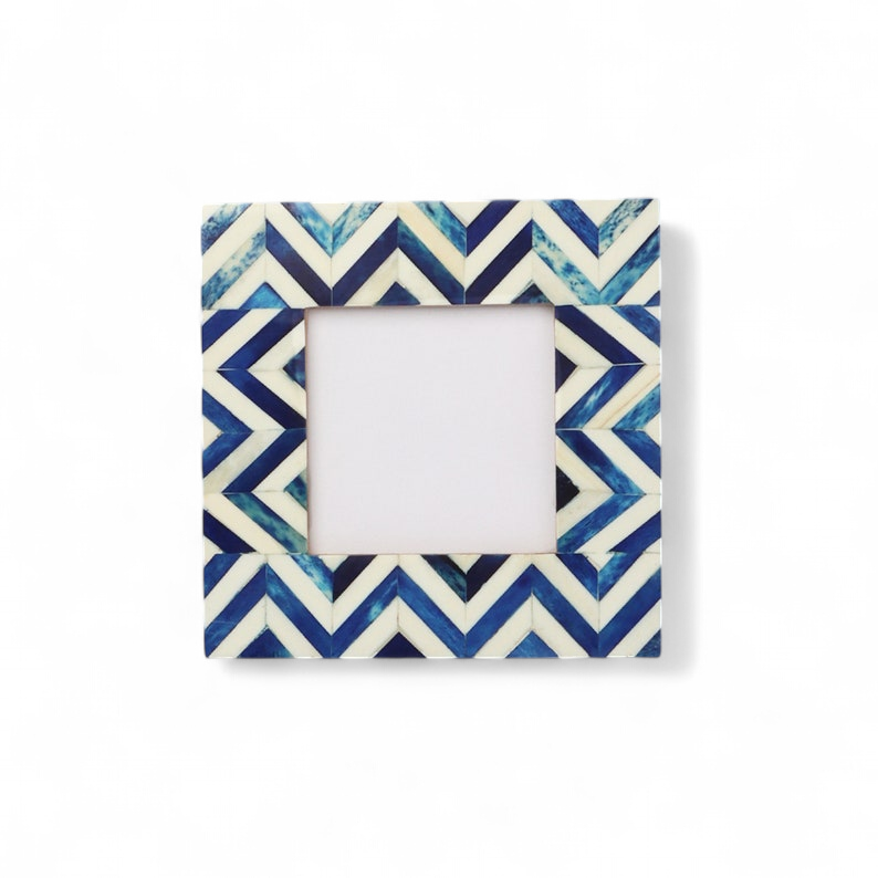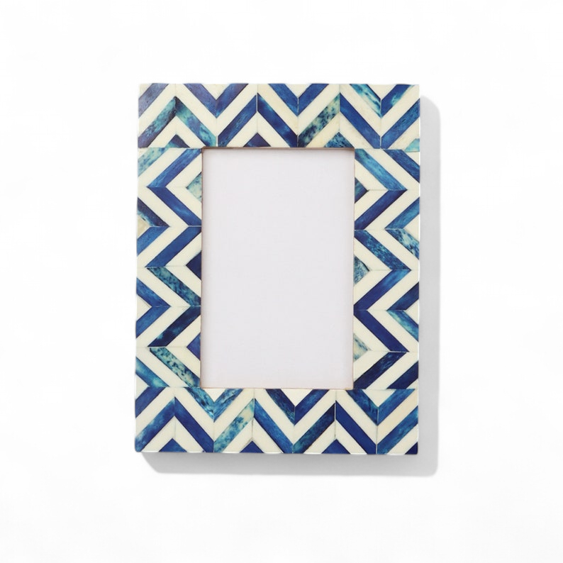 Handcrafted Chevron Resin Photo Frame Set – Blue & White Decorative Picture Frames for Tabletop & Gifting | RB ARTISAN