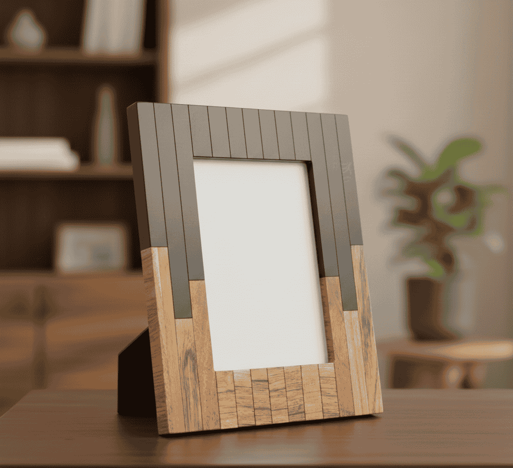 This handcrafted Wood & Resin Photo Frame by RB Artisan features a contemporary design combining a smooth grey resin upper section with a solid natural wooden base. The clean lines and minimal aesthetic make it an ideal décor piece for modern homes, offices, and luxury interiors.