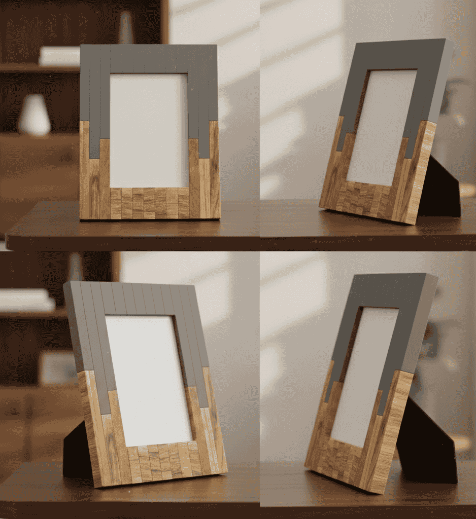 The RB Artisan Wood & Resin Photo Frame is a perfect blend of modern design and natural craftsmanship. The contrast between the cool grey resin and warm wooden texture creates a premium and balanced look, suitable for luxury interiors and export-quality décor collections.