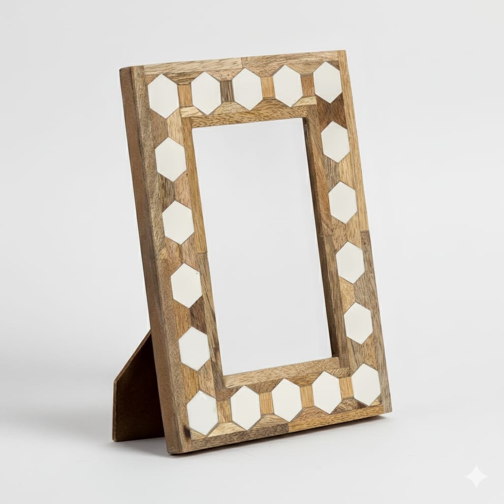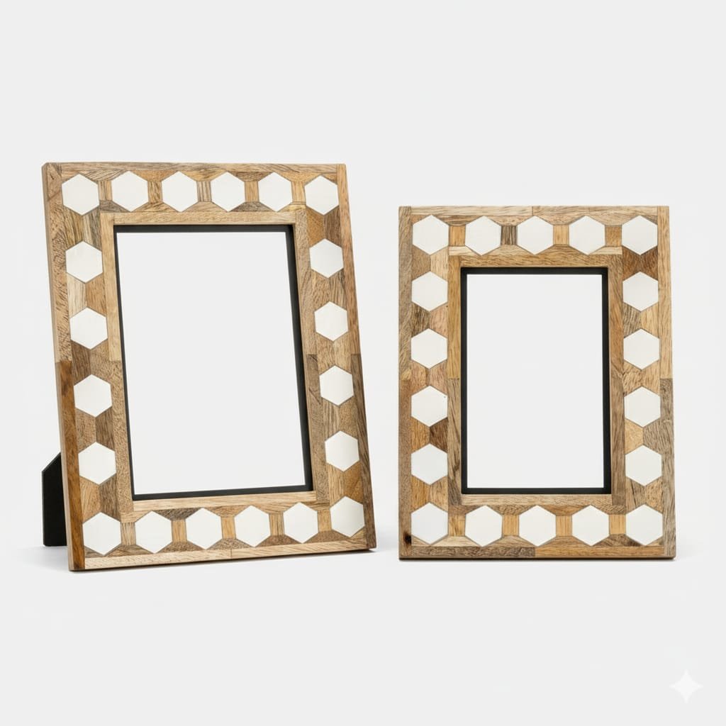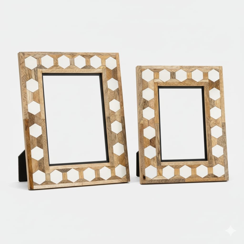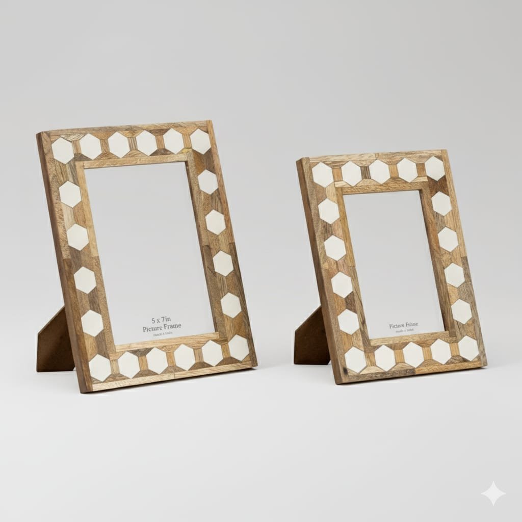 | Product Name | Resin & Mango Wood Photo Frame – Hexagonal Inlay Design |