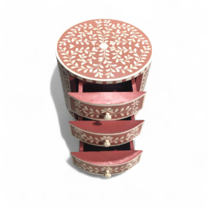 | Product Name | Orange Resin Inlay Round Side Table with 3 Drawers |