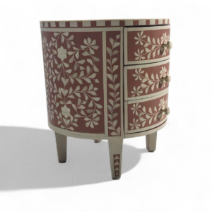 Featuring three spacious drawers, it offers convenient storage while enhancing your space with intricate floral inlay patterns.