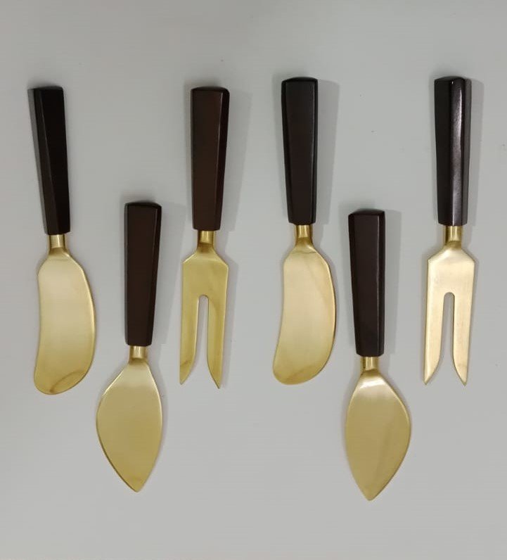 | Product Name | 6-Piece Gold Finish Stainless Steel Cheese Knife Set with Dark Resin Handles |