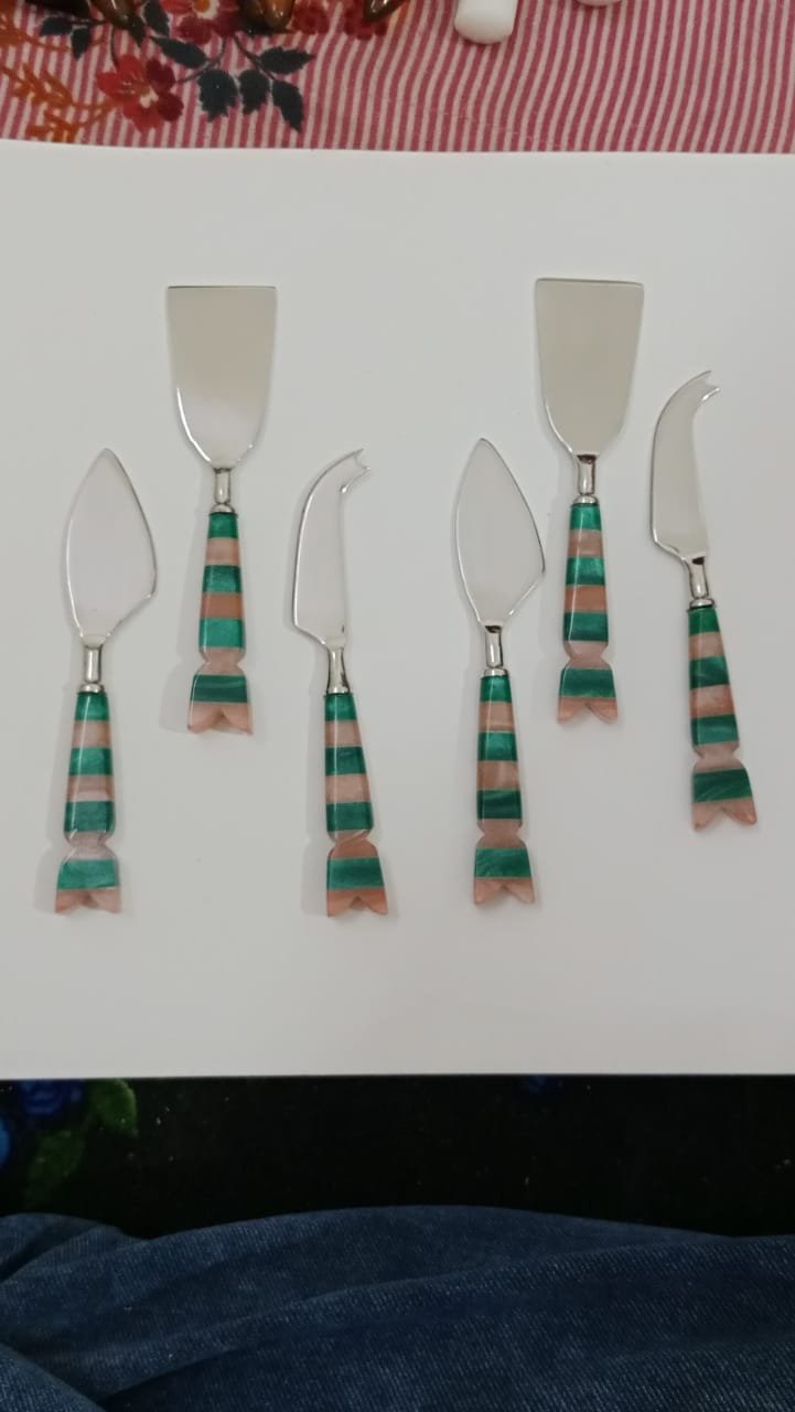 | Product Name | 6-Piece Stainless Steel Cheese Knife Set with Green & Pink Resin Handles |