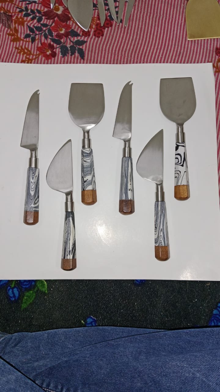 | Product Name | 6-Piece Stainless Steel Cheese Knife Set with Marble Resin & Wooden Handles |