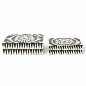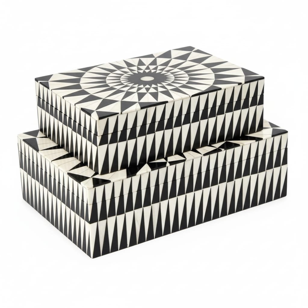 Handcrafted with precision using high-quality resin, these boxes feature an eye-catching geometric pattern that blends classic black and white tones.