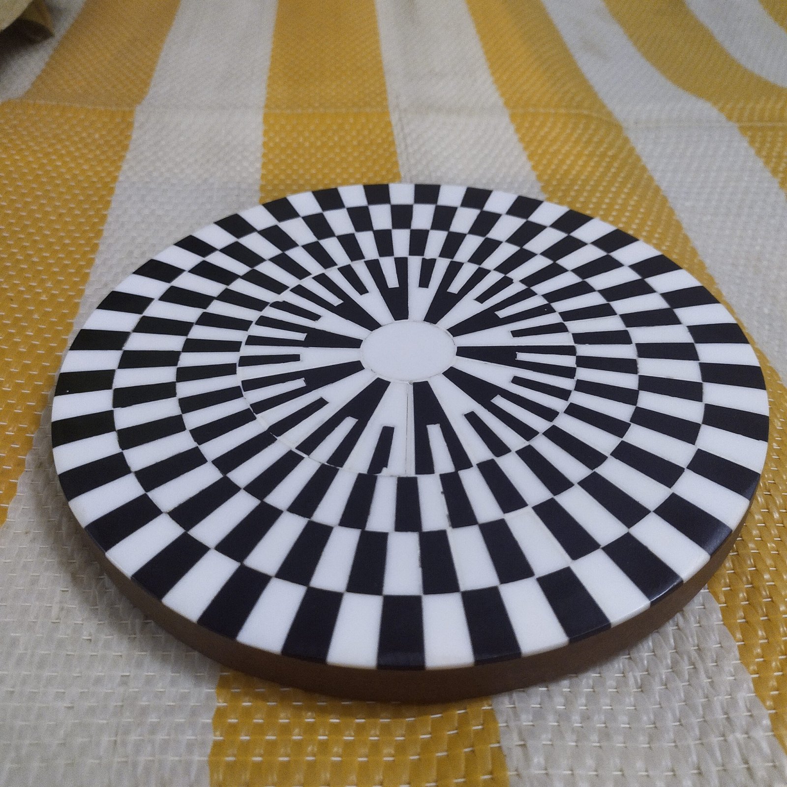 from premium resin/MDF. Designed with an eye-catching optical illusion pattern, this coaster not