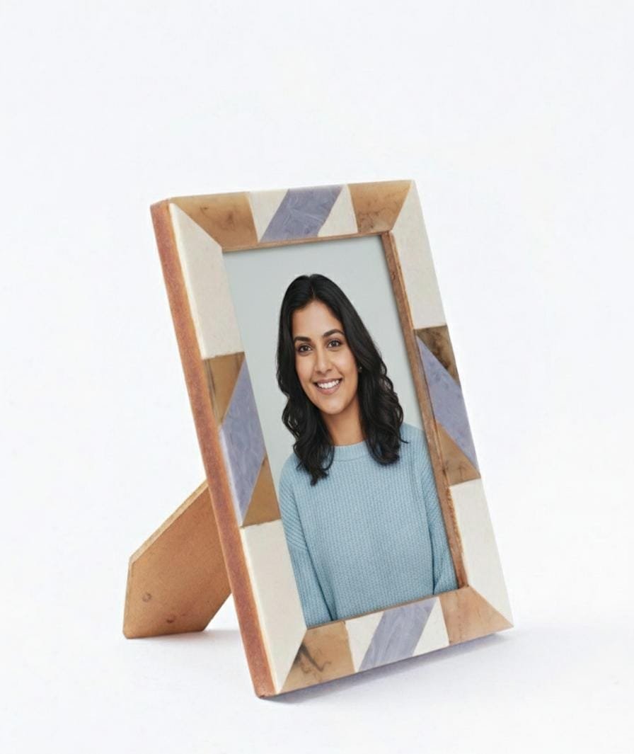 Expertly handcrafted from premium mango wood and resin, this elegant frame features a striking diagonal pattern that blends natural wood grains with soft contemporary tones.