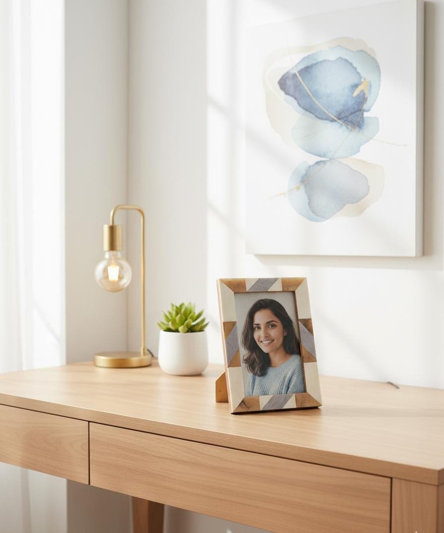 The RB ARTISAN Geometric Inlay Photo Frame brings together craftsmanship and natural beauty.