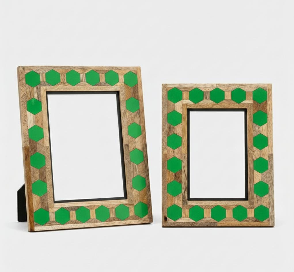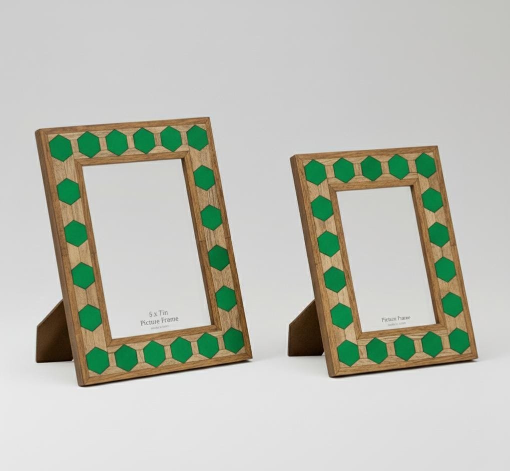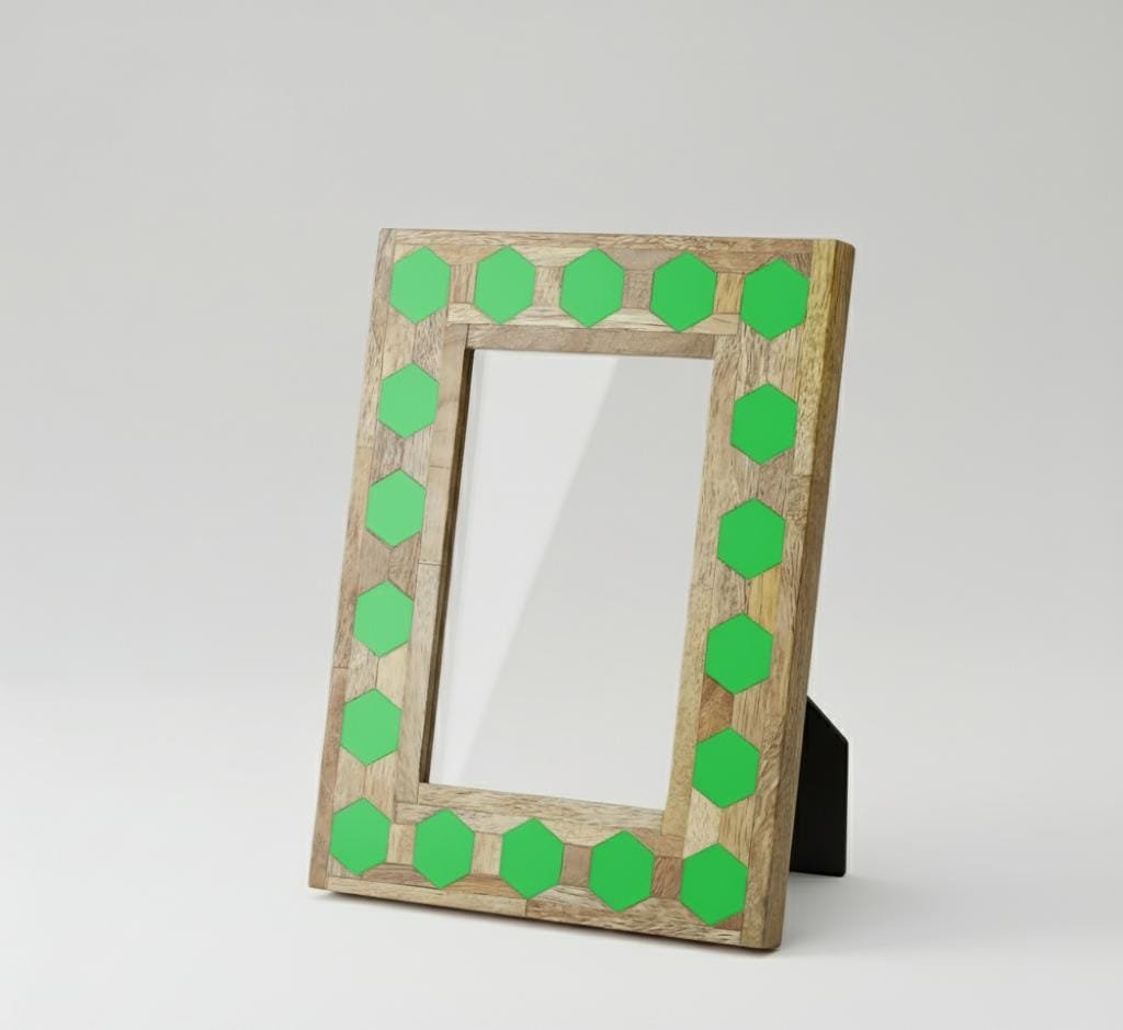 Product Name Hexagon Inlay Photo Frame – green & Natural (7″ × 5″) (6″ × 4″)