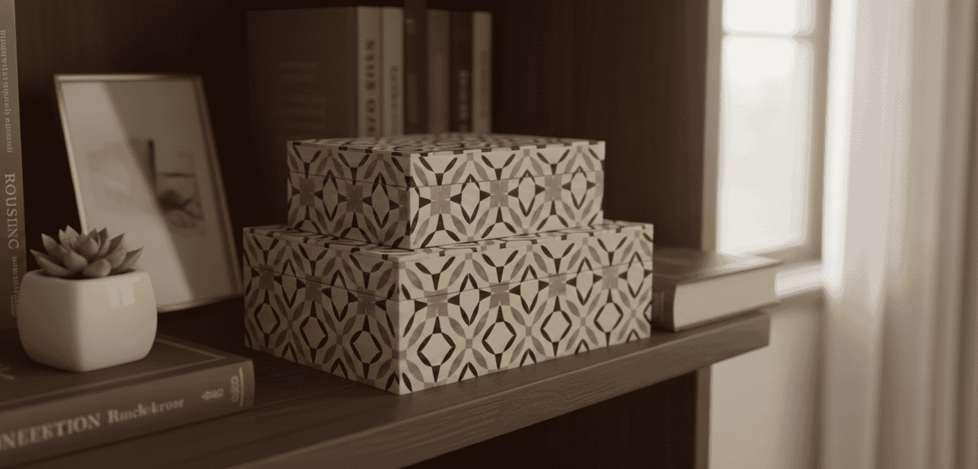 Featuring premium handcrafted resin work with a geometric pattern, these boxes are perfect for stylish storage and décor display.