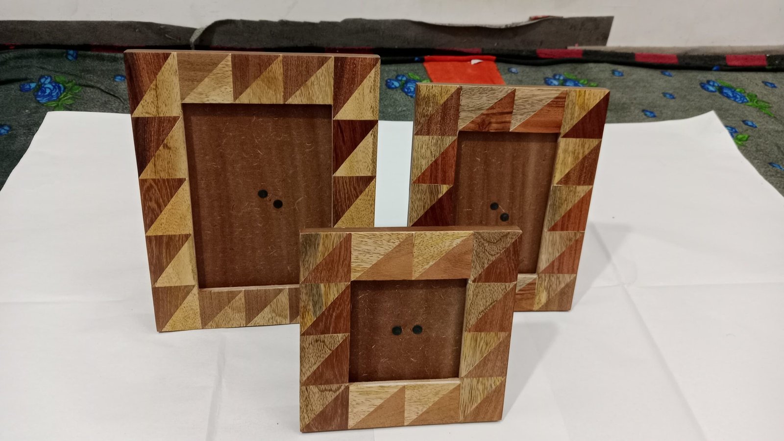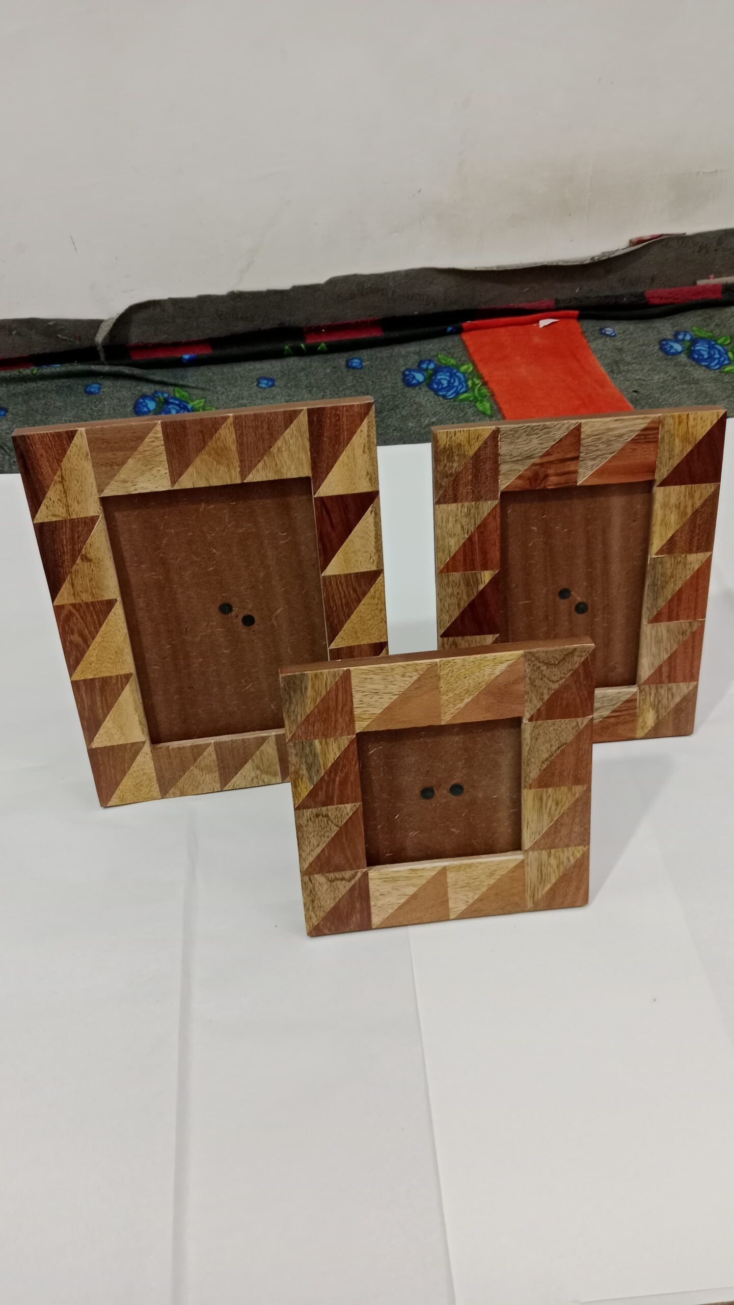 | Product Name | Wood Photo Frame – Mango & Acacia Geometric Inlay (7″×5″, 6″×4″, 4″×4″) |