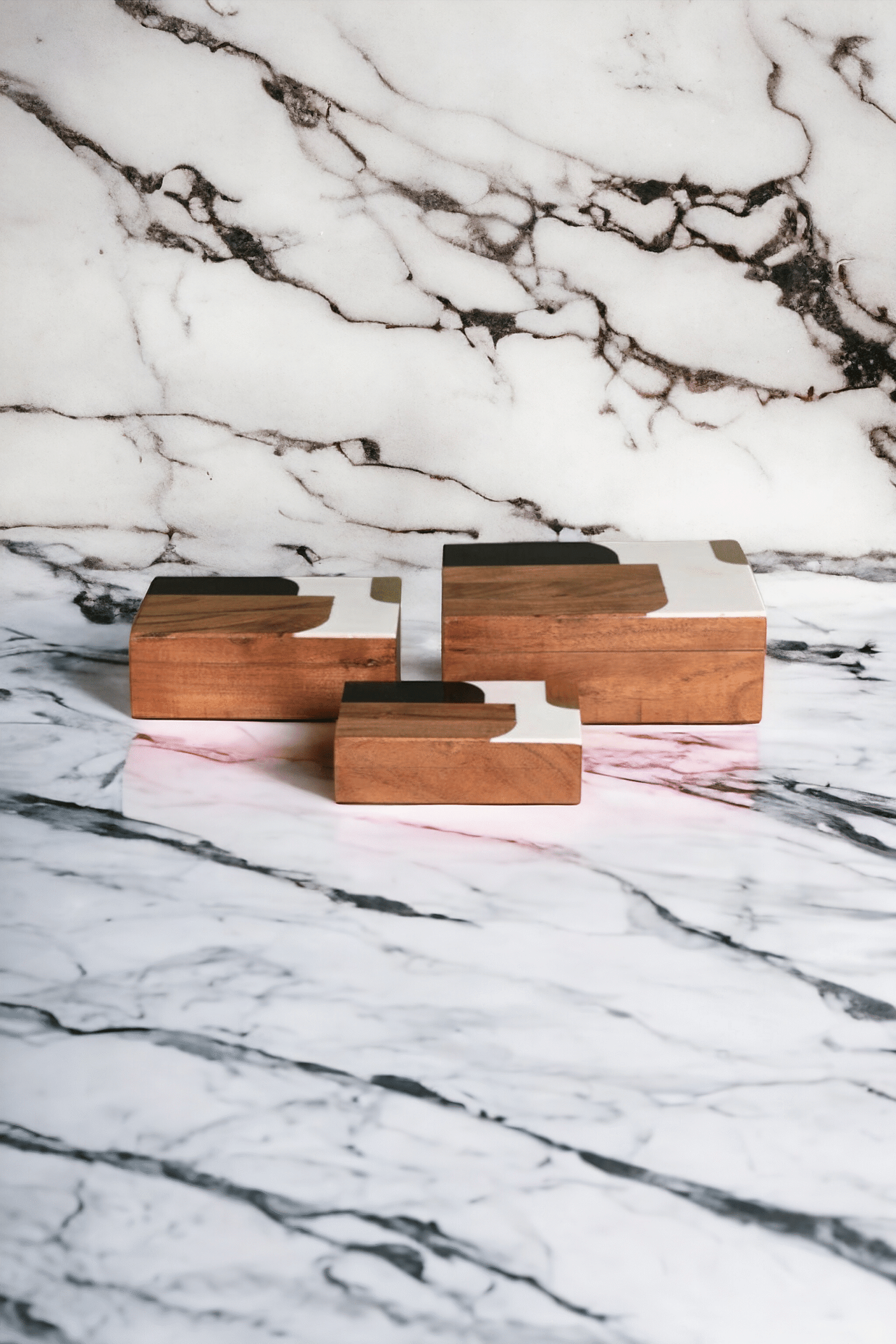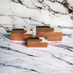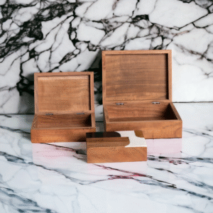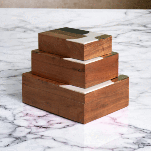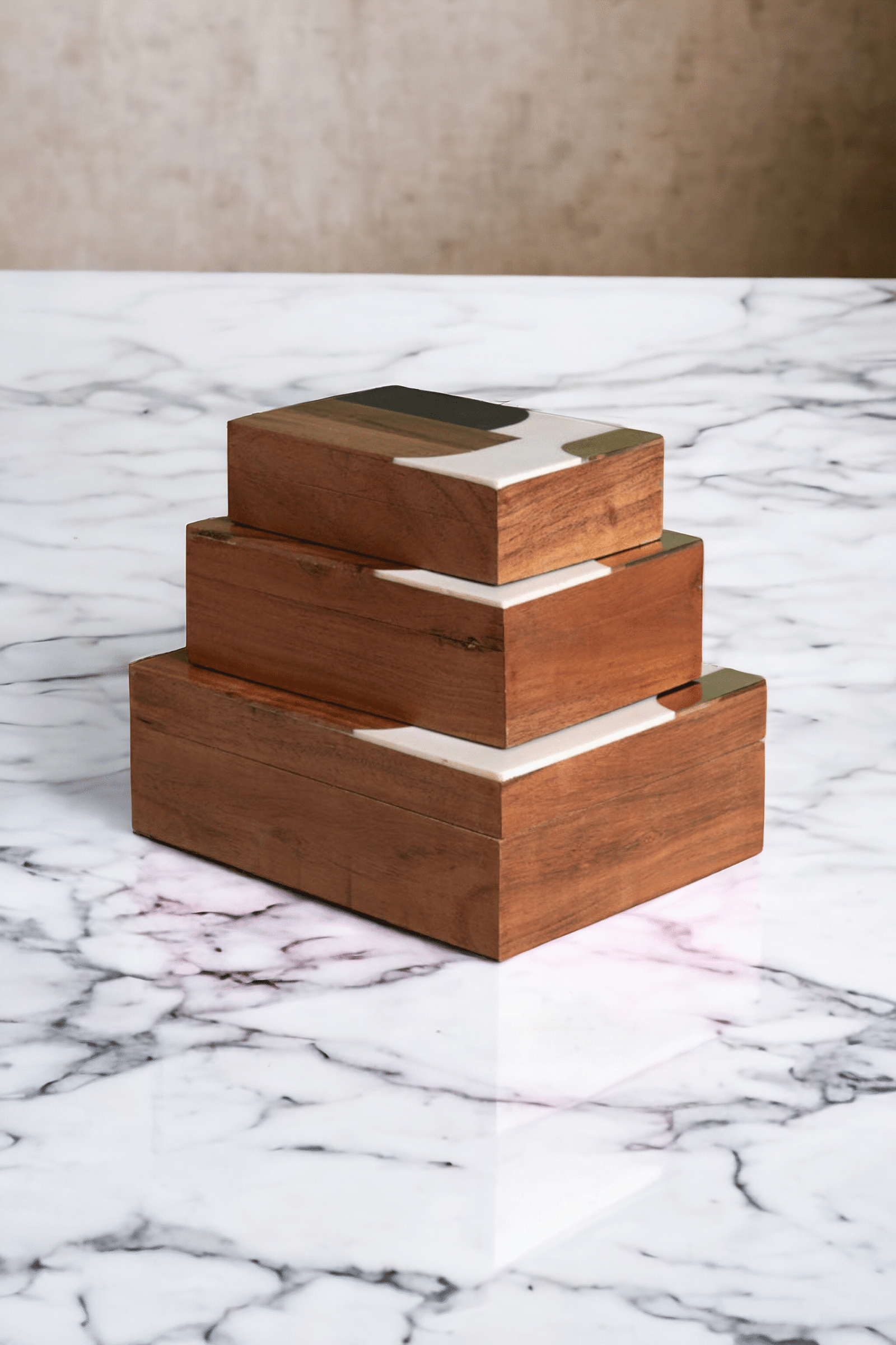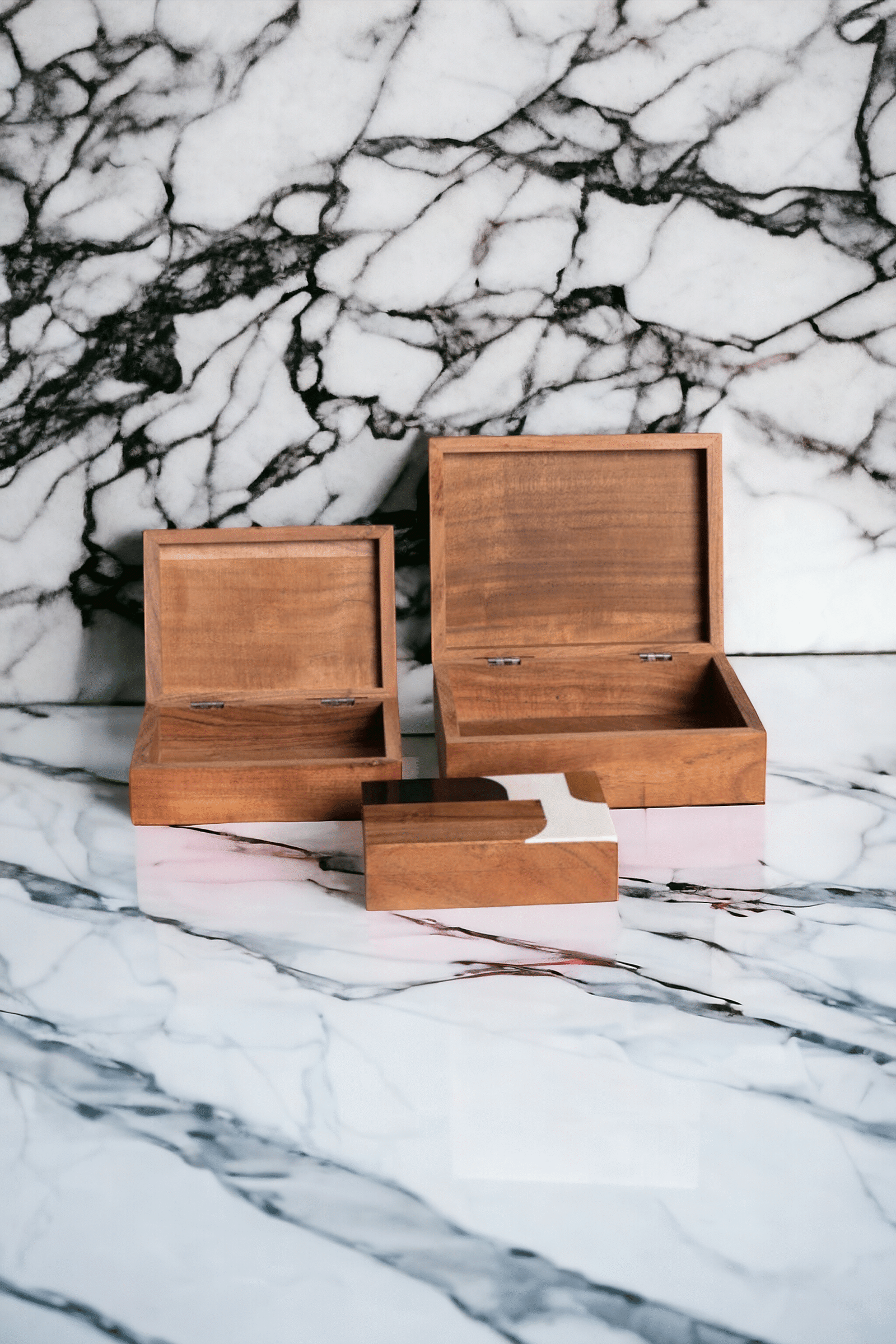 Organize your valuables in style with the RB ARTISAN Wood & Resin Jewellery Box. This elegant handcrafted set features a natural wooden body combined with artistic resin inlay on the lid, giving a modern yet rustic charm. The set includes three different-sized boxes, perfect for storing jewellery, accessories, and small keepsakes. A functional and decorative storage solution for home or gifting.