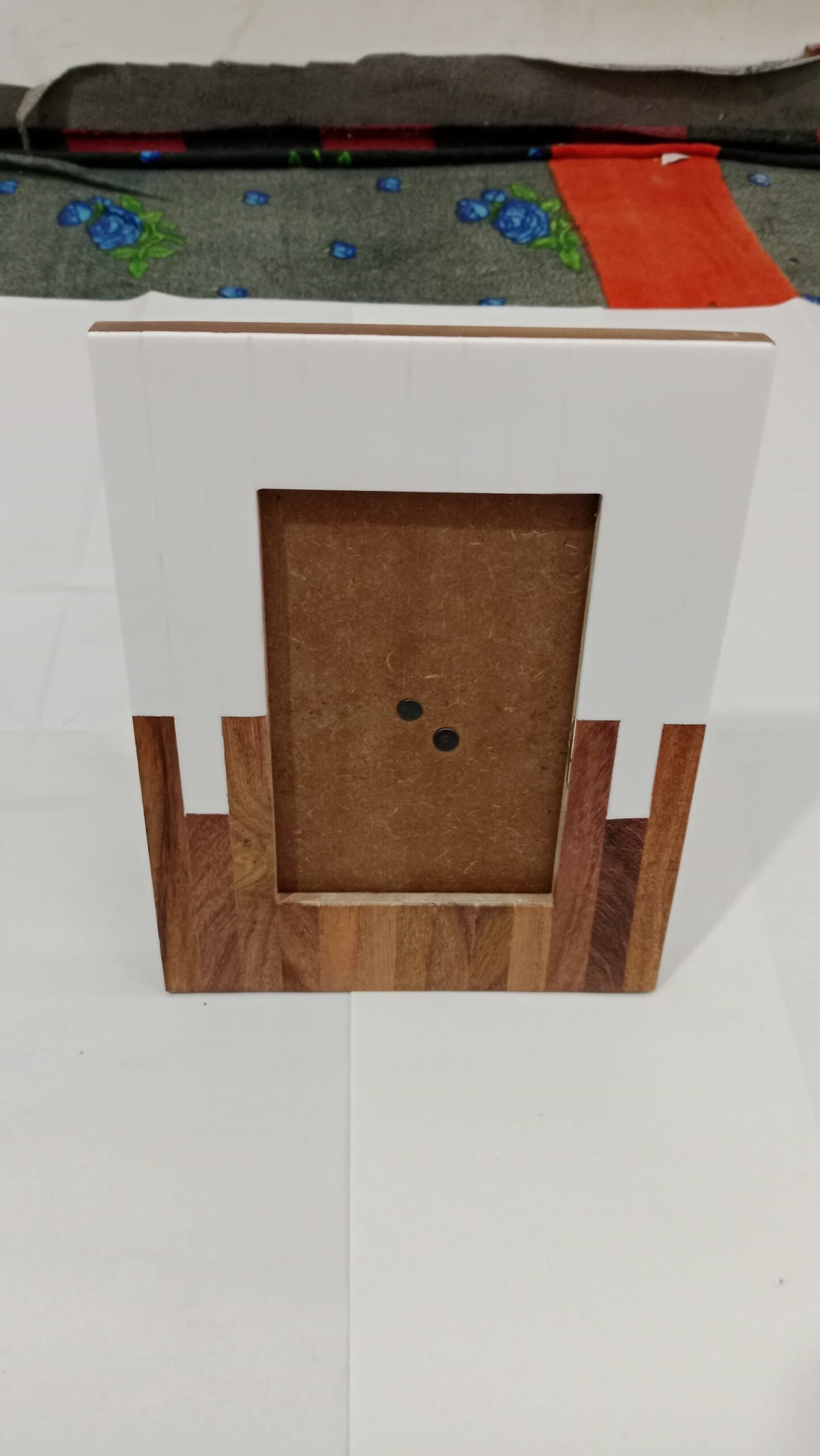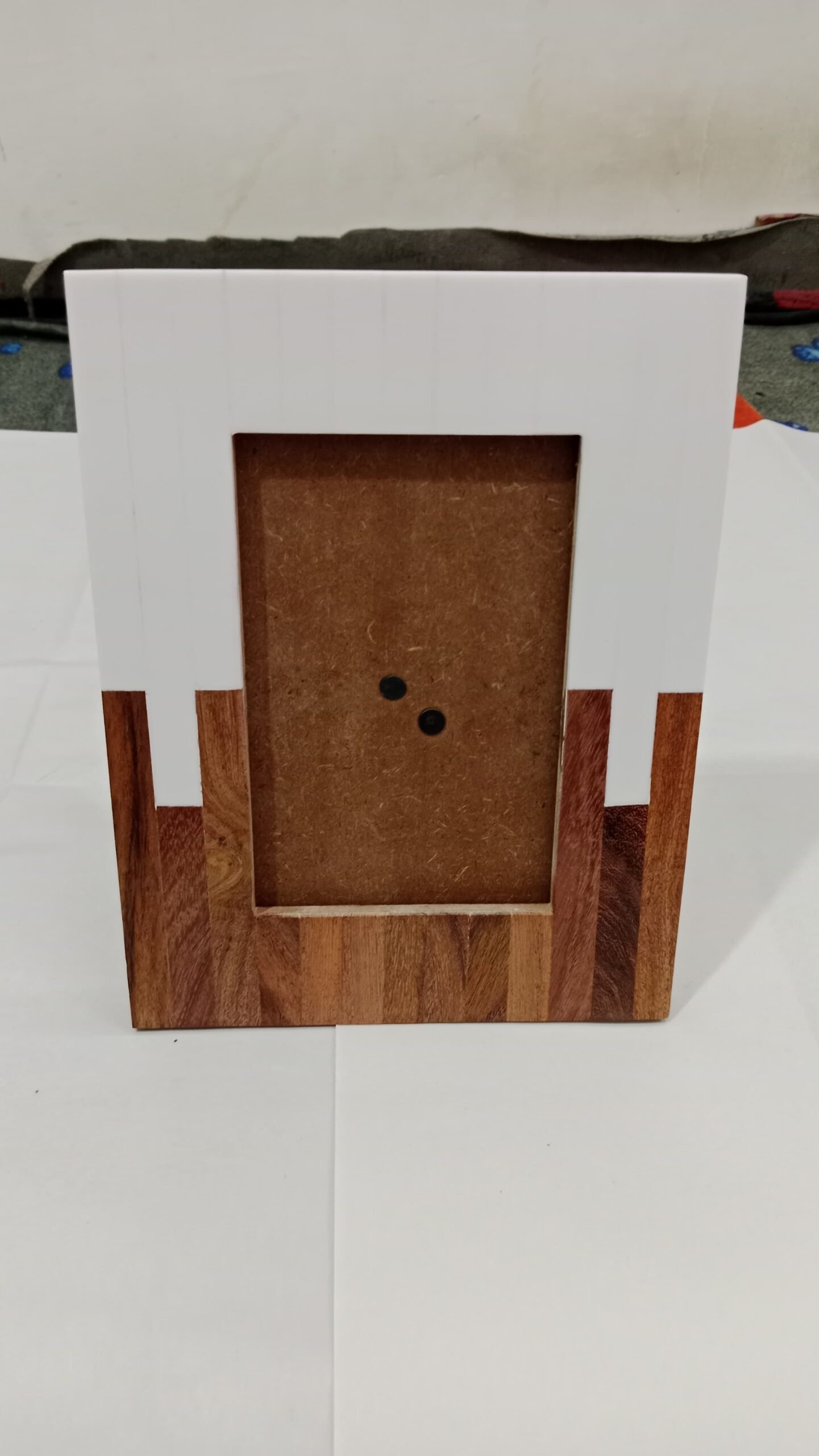 RB ARTISAN Wood & Resin Photo Frame (7″ × 5″) blends warm natural wood tones with crisp white resin accents in a vertical-block design. Handcrafted using quality resin, solid wood veneer and MDF backing, this elegant frame suits modern and rustic interiors alike — perfect for tabletop display, gifting, or boutique retail.