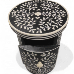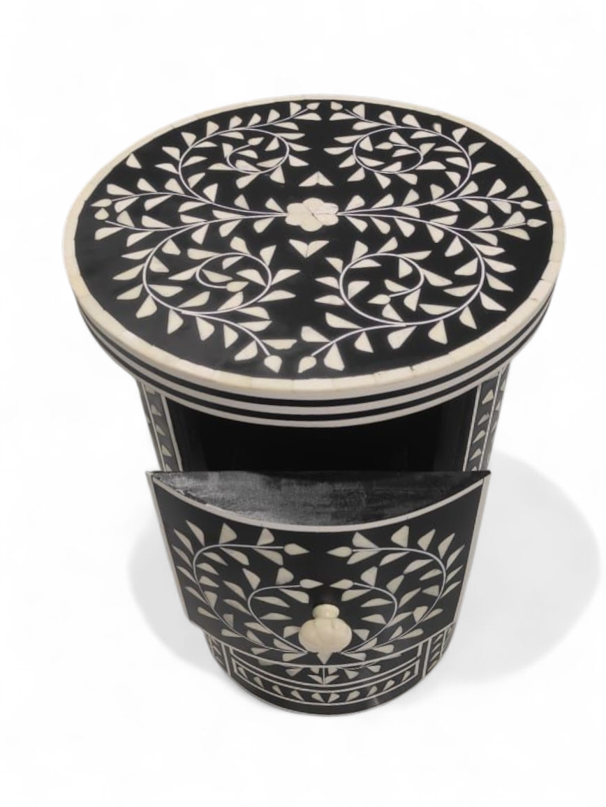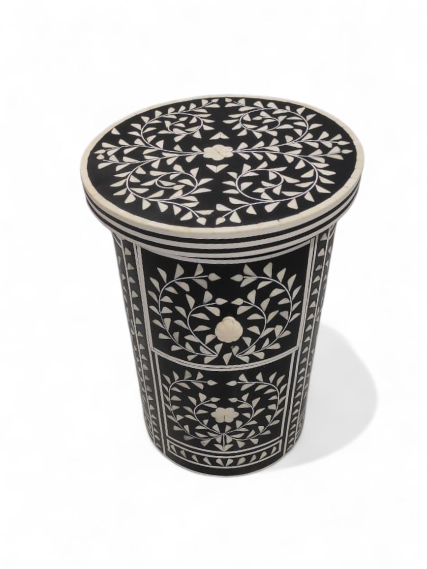 Handcrafted accent furniture with intricate white resin inlay design—perfect for living room, bedroom, and modern interiors.